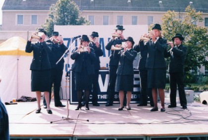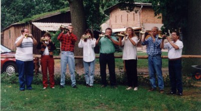 Jagdhornbläsergruppen eingeladen, um ihr Können zu zeigen und das Publikum zu unterhalten. Außer uns traf nur noch eine Bläsergruppe dort ein: die „Jagdhornbläsergruppe Polßen-Meyenburg“.